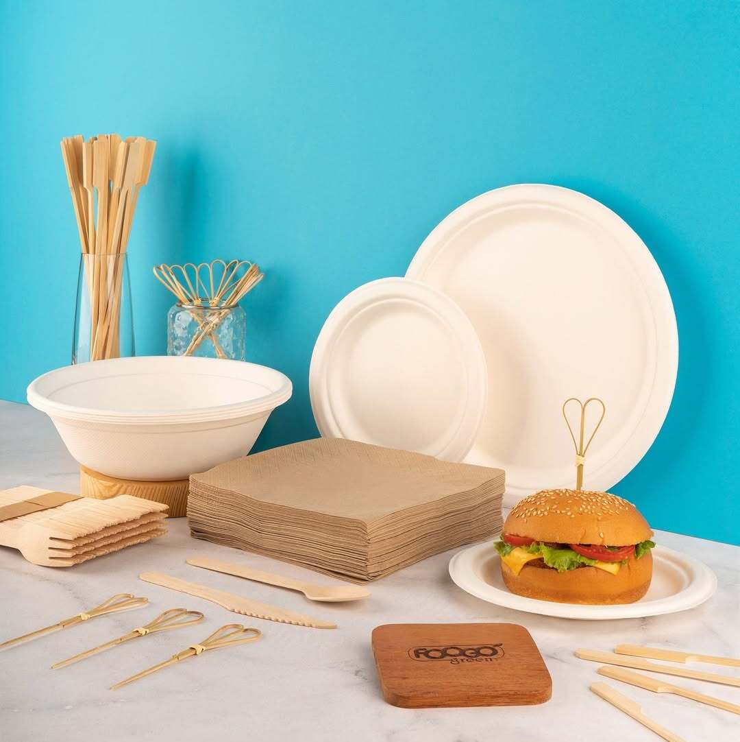 Made from naturally fallen palm leaves, sugarcane bagasse and FSC® certified paper; 100% compostable.